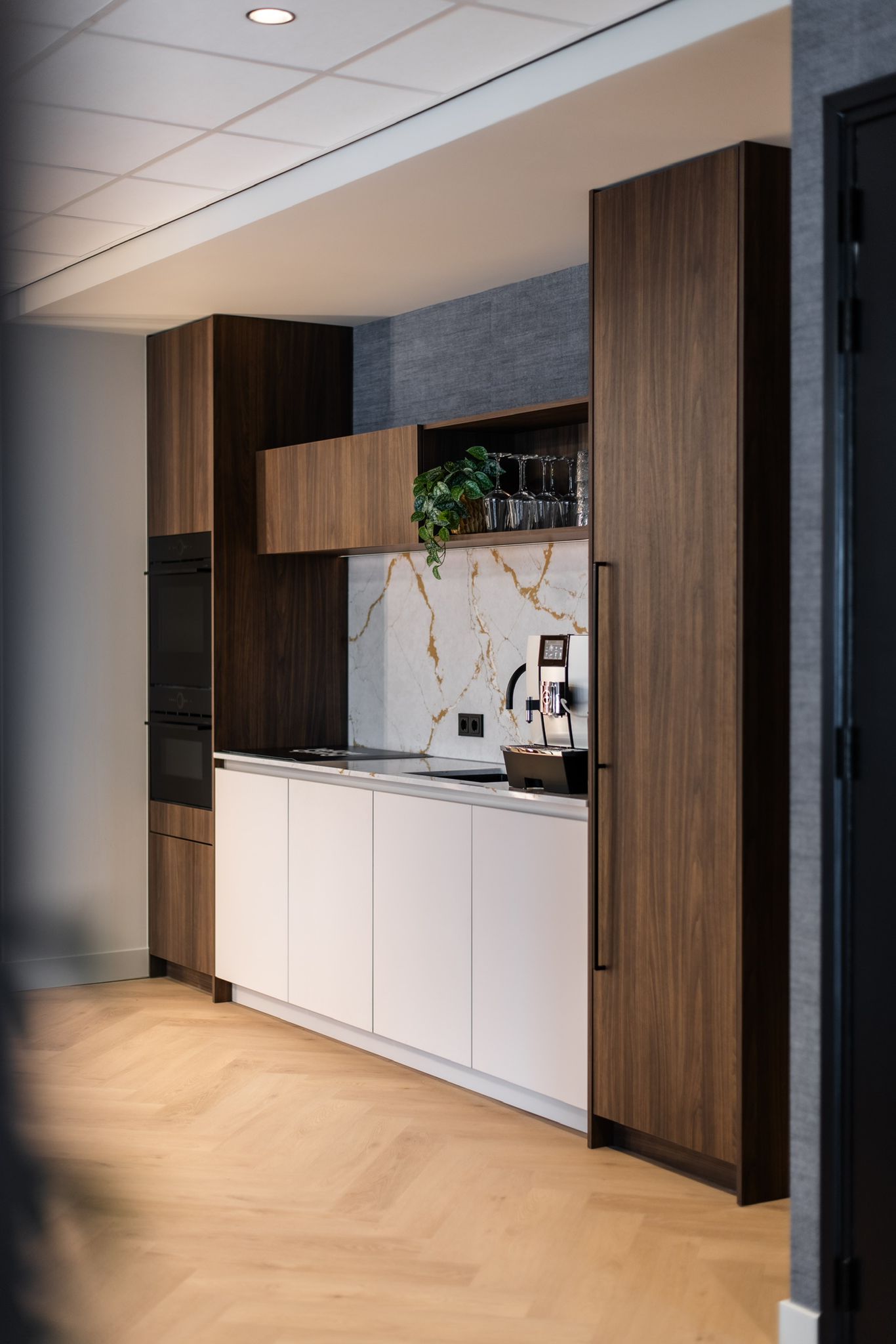 Arnout van VeldhuizenVoor project Yellowstone in Barneveld hebben we een compleet maatwerkinterieur gerealiseerd voor een modern kantoor. Het project omvat onder andere een stijlvolle roomdivider / cinewall, een op maat gemaakte keuken...